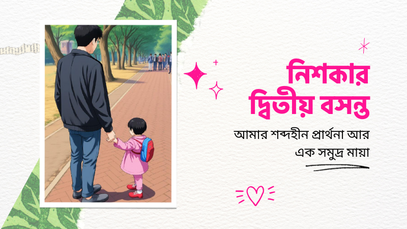 একটি হাদিসে এসেছে – “তোমাদের প্রত্যেকেই দায়িত্বশীল এবং প্রত্যেককেই তার দায়িত্ব সম্পর্কে জিজ্ঞেস করা হবে।” । এই কথাটা আমার কানে প্রতিদিন বাজে, যখন আমি তোমার হাত ধরতে যাই। আমি চাই, আমার দায়িত্ব পালনের ভেতর দিয়ে তুমি নিরাপত্তা খুঁজে পাও, কিন্তু কখনো বন্দিত্ব না পাও। দুই বছরে তুমি এখনো জীবনের অর্থ বোঝো না। কিন্তু আমি বুঝে গেছি যে তোমার জীবনের মানে যেন কেবল সফল হওয়া না হয়, বরং ভালো মানুষ হওয়াই যেন সবচেয়ে বড় পরিচয় হয়। গল্পের শেষে যেমন লেখা থাকে “অতপর তারা সবাই সুখে শান্তিতে বসবাস করতে থাকলো” – আমি জানি, জীবনে সব সময় সুখ আসে না। তবু আমি আল্লাহর কাছে দোয়া করি, যেন তুমি যে পথেই যাও, সেখানে ন্যায়, দয়া আর সত্য তোমার সঙ্গী হয়।