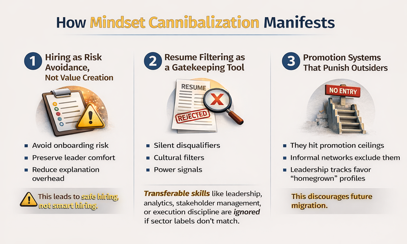 Transferable skills like leadership, analytics, stakeholder management or execution discipline are ignored if sector labels don’t match.