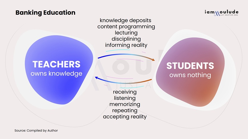 Instead of fostering dialogue or inquiry, this model turns education into a one-way street: teachers narrate facts and students memorize and regurgitate them without question. Freire likened this to a banking transaction because knowledge is treated as a static commodity – gifted from the “knowledgeable” teacher to the “ignorant” student.