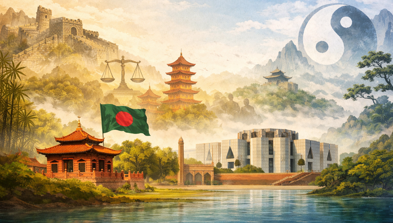 প্রাচীন চীনা দর্শনগুলো বাংলাদেশের রাজনৈতিক সমীকরণে জন্য একটি আয়না। লেগালিজম দুর্নীতি কমাতে, কনফুসিয়ানিজম নৈতিকতা গড়তে এবং তাওইজম স্বচ্ছতা বাড়াতে সাহায্য করতে পারে। কিন্তু এগুলোকে গণতন্ত্রের সাথে মিলিয়ে নিতে হবে, না হলে স্বাধীনতার হানি হবে। বাংলাদেশের নেতাদের জন্য এটি একটি সতর্কতা – শাসন কি কঠোরতা দিয়ে, নৈতিকতা দিয়ে, নাকি প্রাকৃতিক সামঞ্জস্য দিয়ে? চীনের মতো সংশ্লেষণ করে আমরা একটি শক্তিশালী রাষ্ট্র গড়তে পারি।